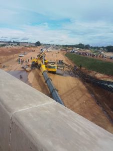 The incident occured during a crane de-erection operations at the Trabablas Interchange construction project site.