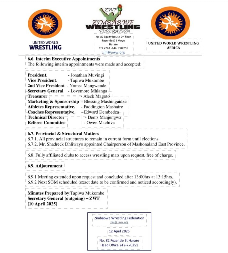 Wrestler Jonathan ‘Mr Mat’ Muvingi has been elected interim president of the Zimbabwe Wrestling Federation (ZWF) with effect from April 10.
