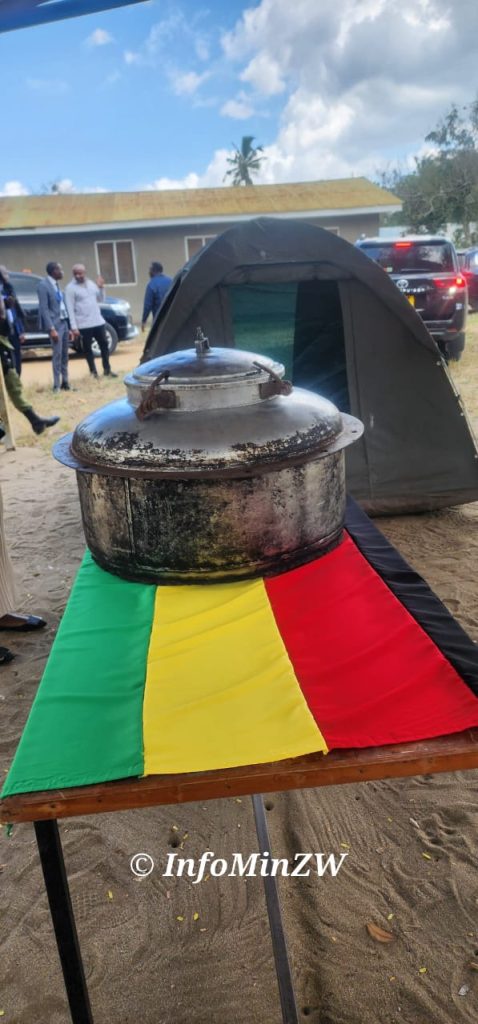 Vice President Mohadi, who is in Mozambique for a diplomatic tour of the SADC countries, was shown a historic cooking pot that was once used to prepare food for President Mnangagwa.
