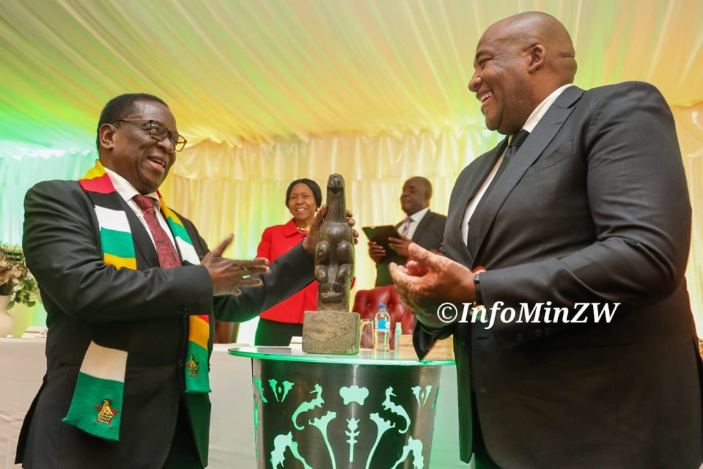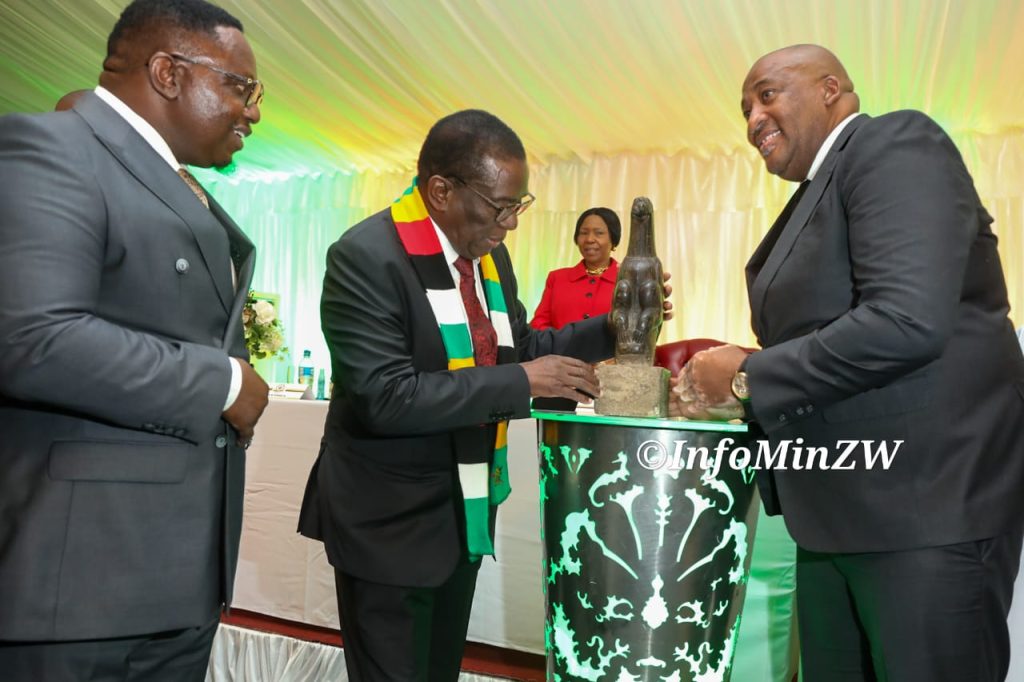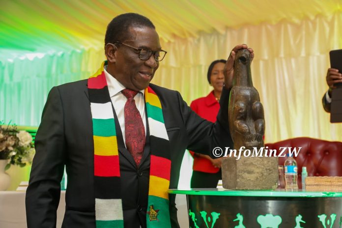 President Mnangagwa has received the centuries-old Zimbabwe Bird, Chapungu at State House in Harare.